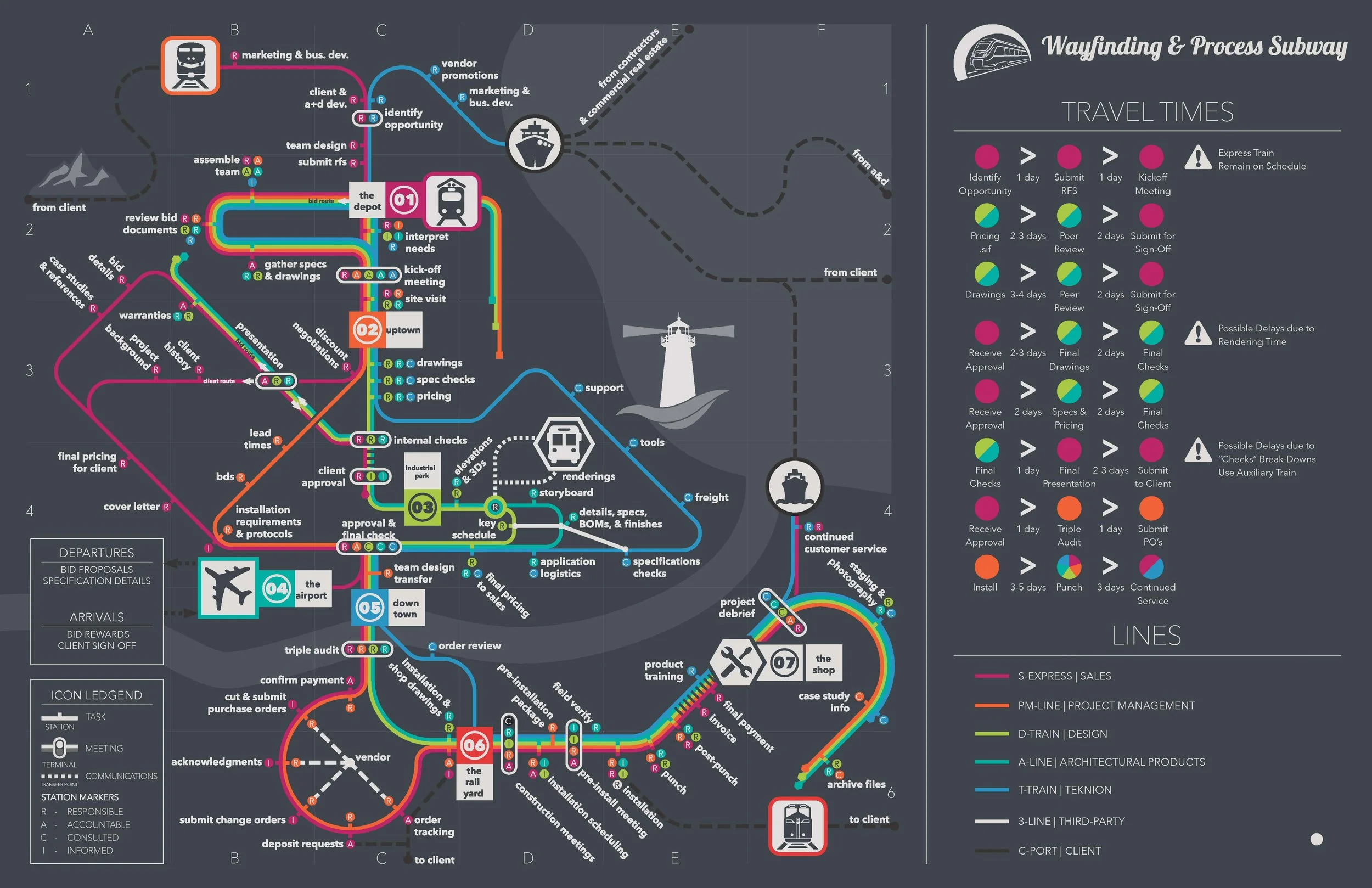 This process map now serves a dual purpose: internally, as a key reference for employees, and externally, as a communication tool that helps clients appreciate the thoroughness and expertise that goes into every project.
